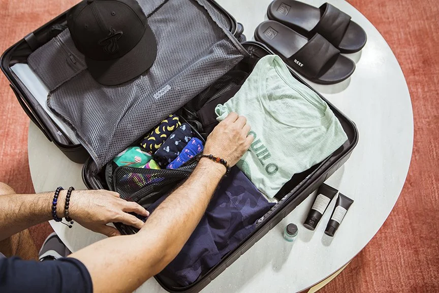For this photoshoot, we met up with local Miami Chef, Cesar Zapata, at the gorgeous W Hotel, on South Beach, for his take on packing for a stay in Miami.